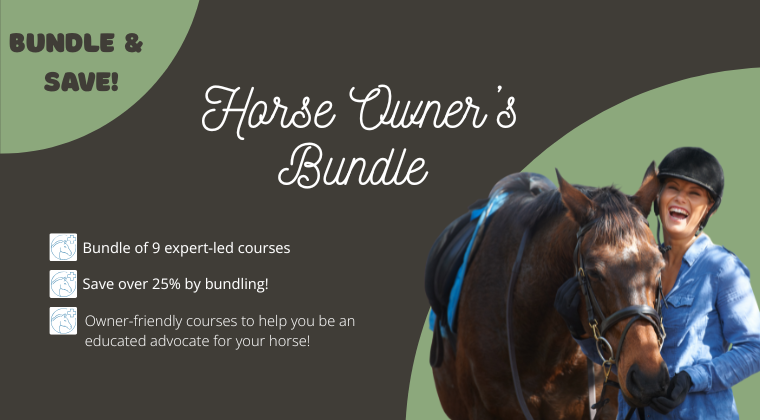 BundleA bundle of 9 expert-led courses ideal for savvy horse owners who want to be well-educated advocates for their equine partners! Learn about hoofcare, dental care, anatomy, biomechanics, equine behavior, and more! Save over 25% off by bundling!